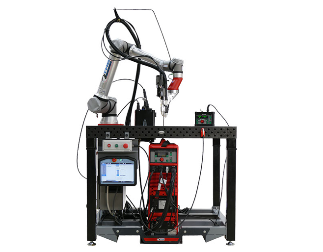 Cobot Welder được chế tạo trên thiết bị tiêu chuẩn đã được chứng minh trong ngành: Universal Robots UR10e; Gói hàn cobot của Miller bao gồm bộ cấp dây Invision 352 và S74; Mỏ hàn Tregaskiss Tough Gun; Bàn hàn Siegmund (32" x 48"; lỗ 5/8" ở tâm 2"); và phần mềm hàn Hirebotics.