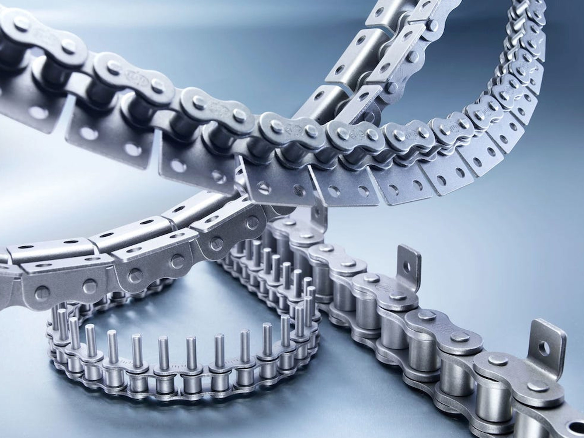 Cung cấp đầy đủ các loại xích truyền động, bao gồm xích con lăn tiêu chuẩn simplex và multiplex theo các tiêu chuẩn JIS, ANSI và ISO. Danh mục sản phẩm còn bao gồm xích chịu mỏi cao (dòng LL), loại không cần bôi trơn, xích thép không gỉ chịu nhiệt và chống ăn mòn, cũng như các loại xích được xử lý bề mặt. Các sản phẩm này được ứng dụng rộng rãi trong nhiều lĩnh vực công nghiệp như ô tô, máy móc công nghiệp, thực phẩm và thiết bị logistics.