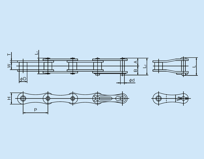 Đường kính con lăn (D): 10.16 mm